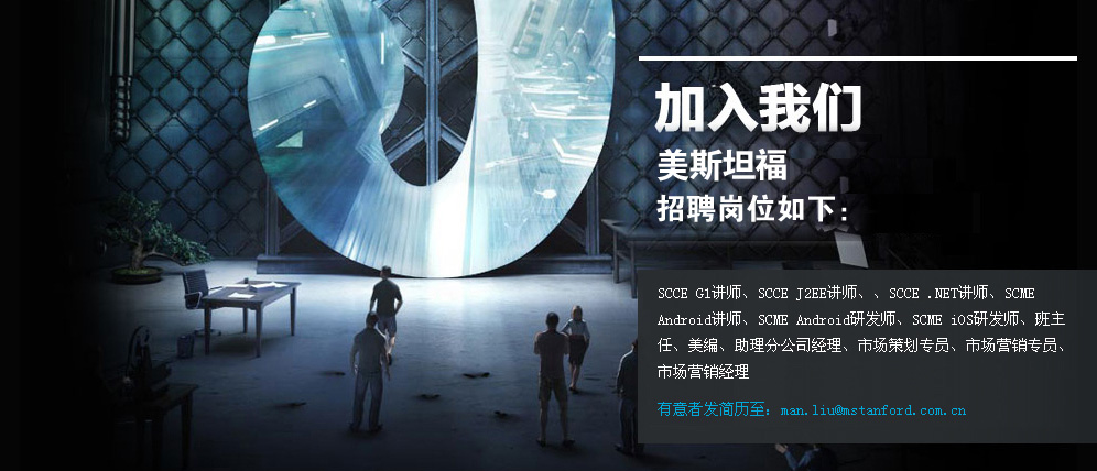 SCME 2012是美斯坦福(中国)IT教育最新推出的高端移动通信(应用开发)工程师职业教育课程,是一款面向高等院校、促进高校专业创新、提升学生就业质量 的职业教育产品。该产品体系旨在培养符合3G软件企业入门要求,拥有相当于1年3G移动商务软件开发经验的3G应用开发工程师。目标就业岗位有:3G前端软件开发工程师、WAP 软件工程师、3G移动商务软件开发工程师、3G增值业务软件开发工程师。产品应用开发平台为目前市场占有率超过90%的Android、iOS两大智能系统,涵盖了3G前端开发 (XHTML、JAVASCRIPT)、J2EE SSHA服务器端开发、J2ME客户端开发、IPHONE客户端开发、Android客户端开发五个方面共计32个实训项目,超过64000行代码编写量。